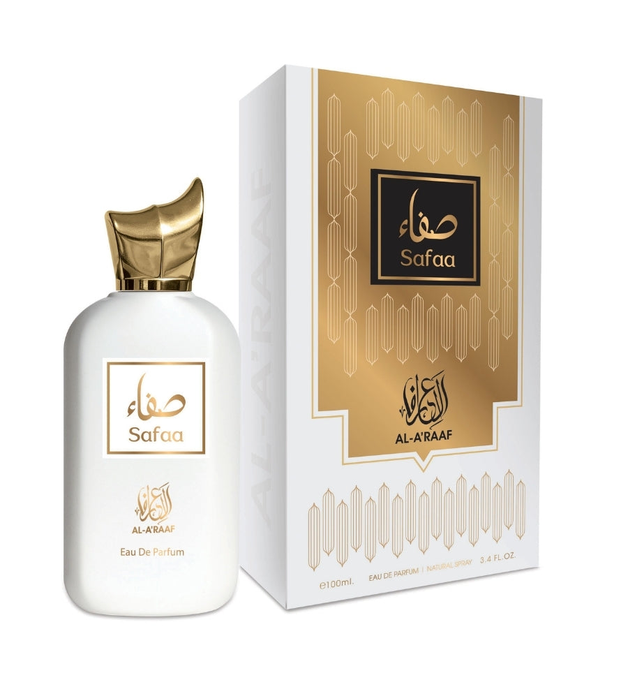 Safaa is a captivating oriental floral fragrance for women who seek elegance and refinement. The scent opens with an invigorating blend of Almond, Coffee, Bergamot, and Lemon. The heart of the fragrance reveals soft and luxurious floral notes, including Tuberose, Jasmine Sambac, and Orange Blossom, balanced by Bulgarian Rose. The base notes of Tonka Bean, Cacao, Vanilla, Praline, Sandalwood, Musk, Amber, Cashmere Wood, Cinnamon, Patchouli, and Cedar add warmth and depth, creating a fragrance that lingers and captivates.