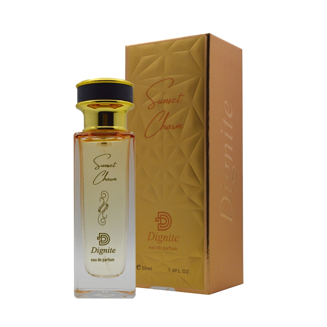 Sunset Charm is a vibrant and zesty fragrance that opens with a refreshing burst of lime, bergamot, and mandarin orange. The heart introduces a unique aromatic blend of basil, iris, lilac, and thyme, creating a sophisticated yet herbal appeal. It settles into a warm, earthy base of vetiver and patchouli, making it a timeless choice for both men and women.